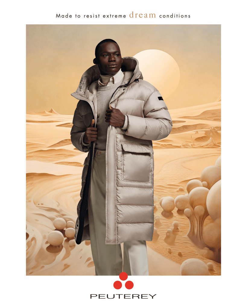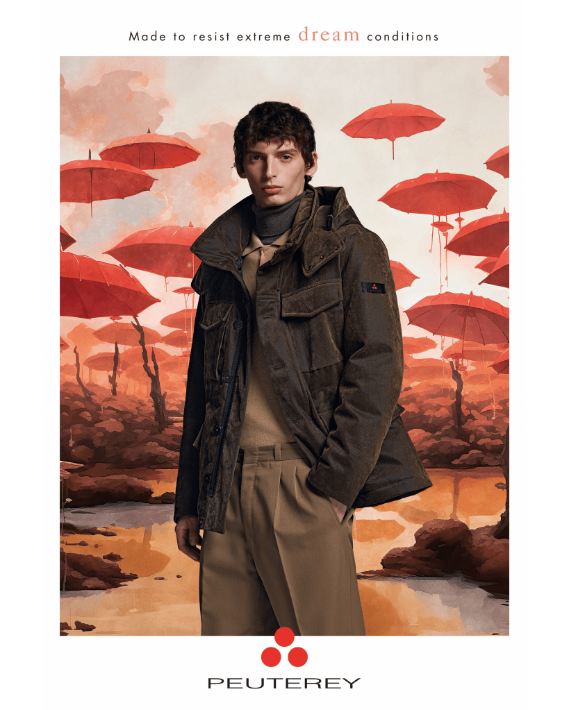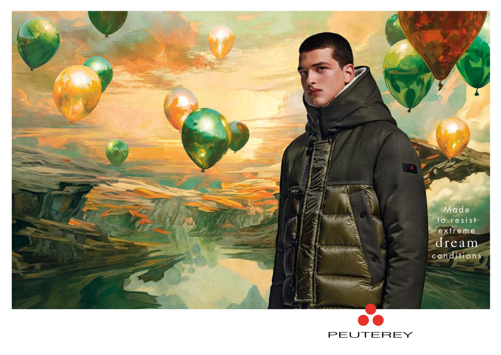Shot in studio with real models wearing real clothes, immersed in A.i. generated painterly locations. The settings let the viewer in an oneiric world, in a interplay with the delicate colours of the season.